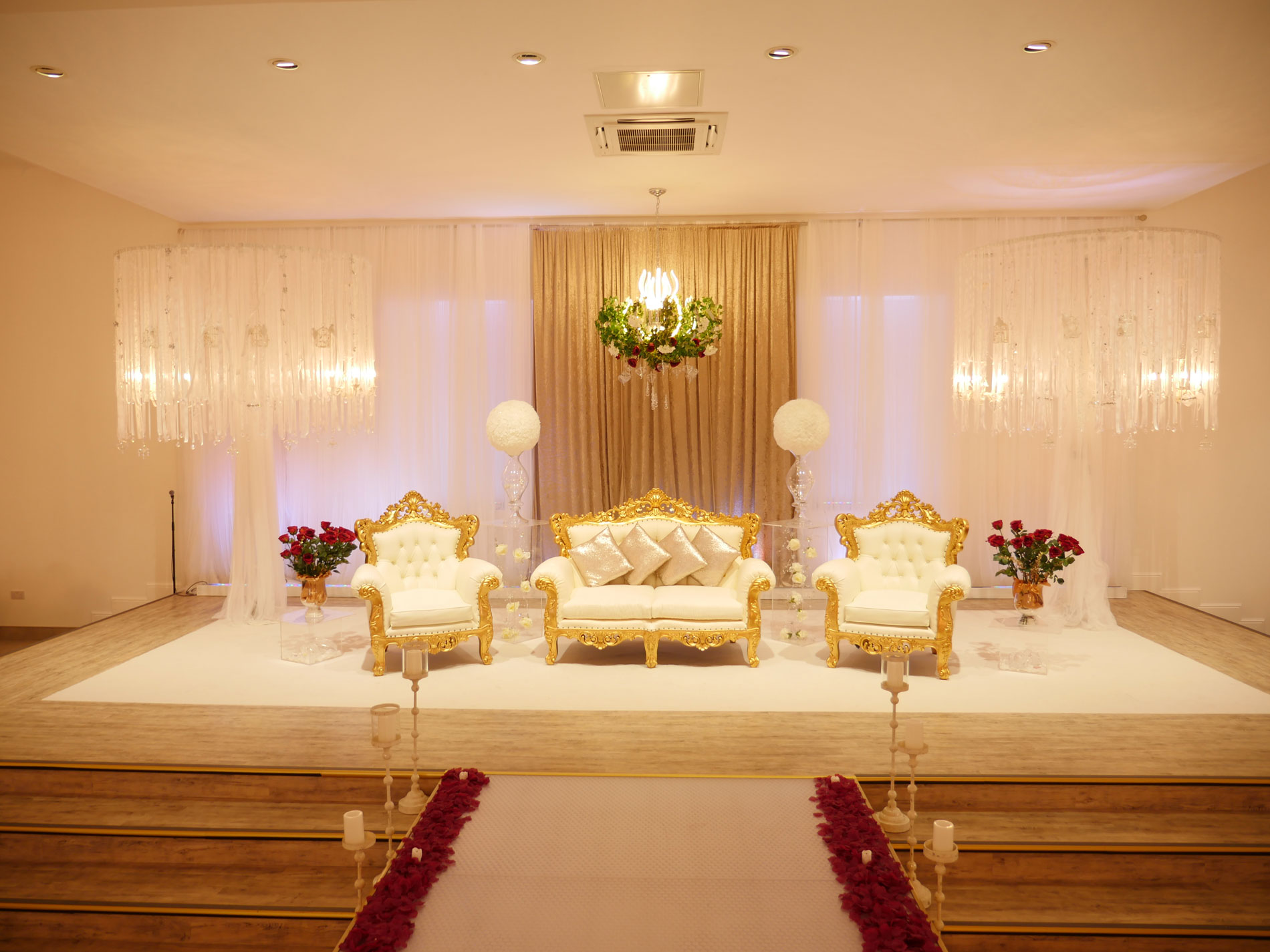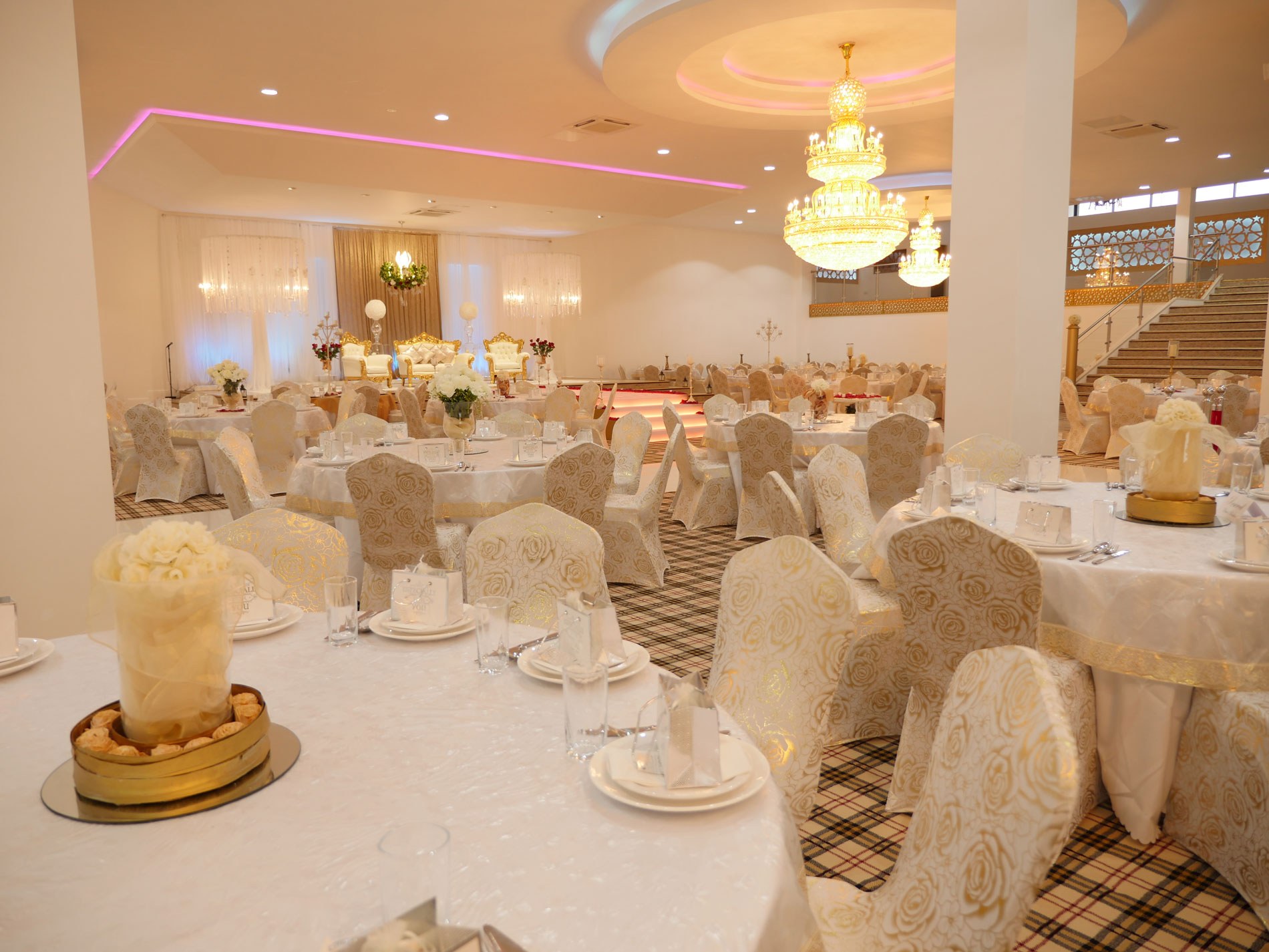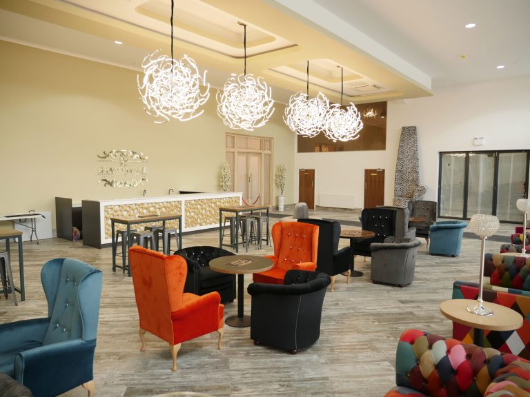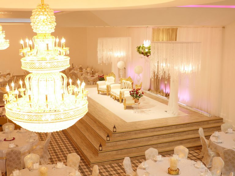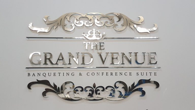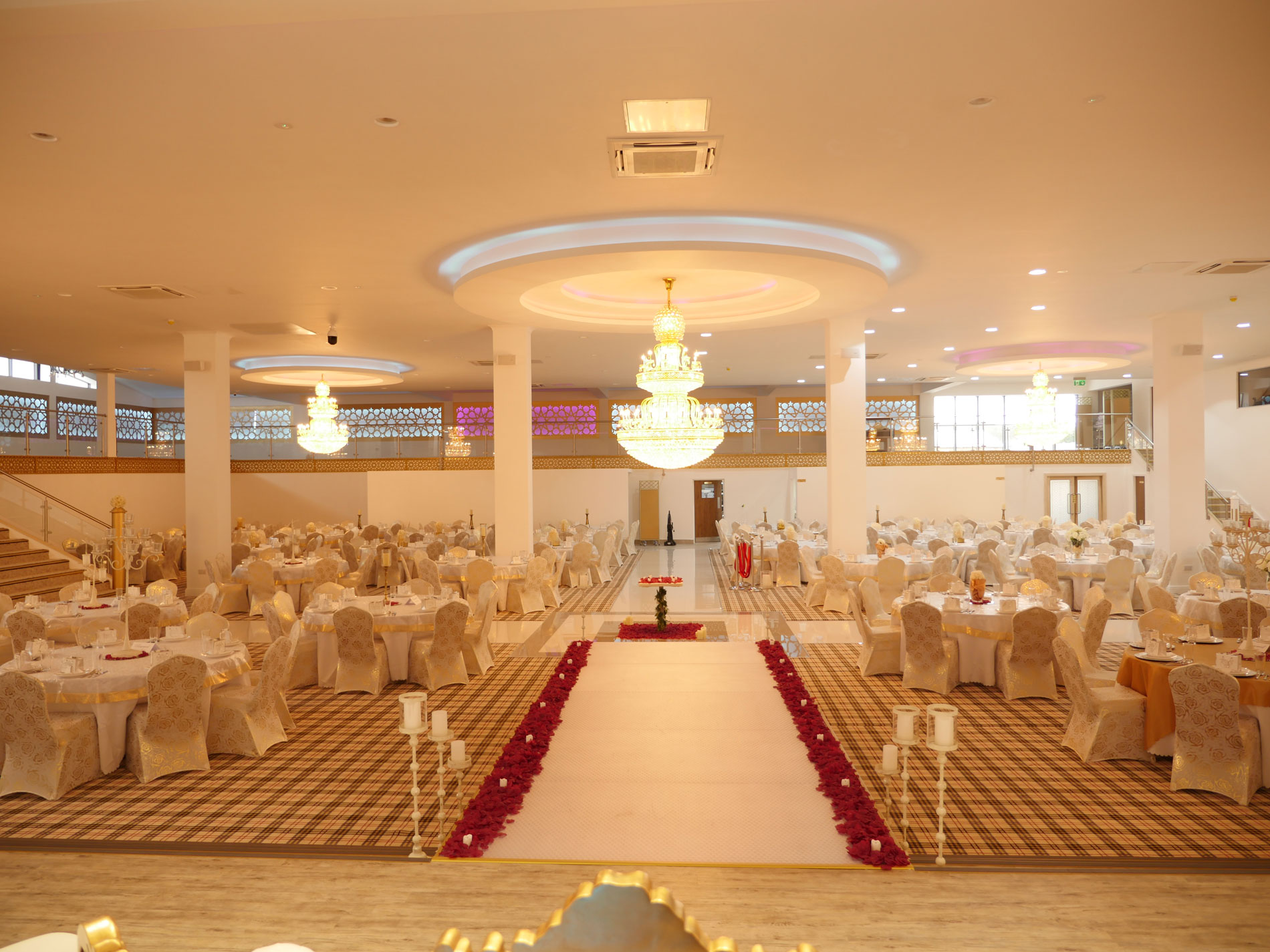 The Grand Venue – Catwalk (purple) The Grand Venue – seating arrangement The Grand Venue – seating with cake stand The Grand Venue – chandelier The Grand Venue – conference seating