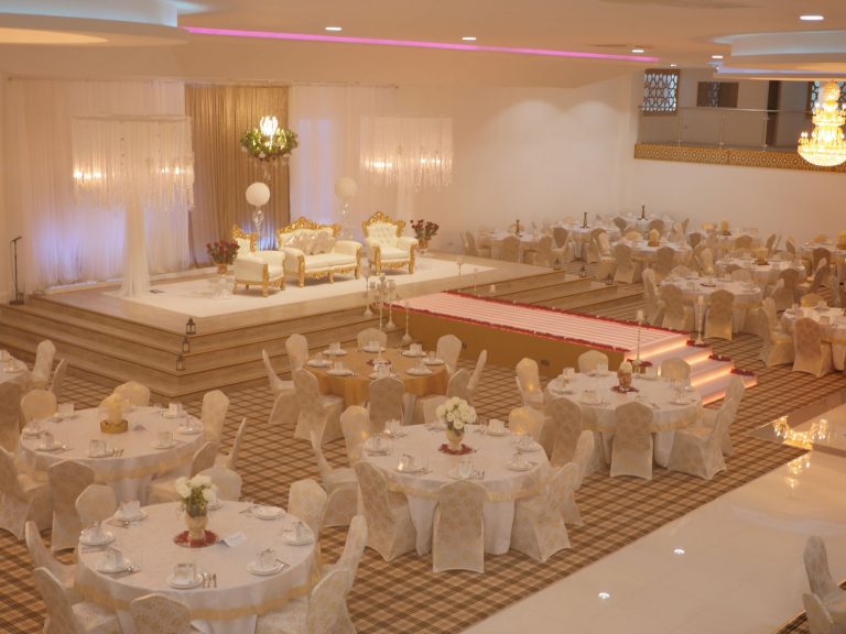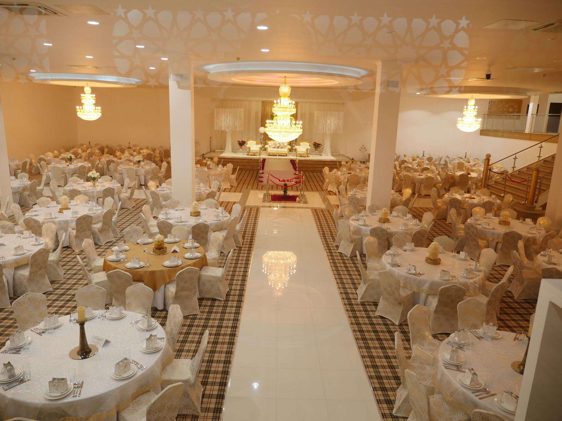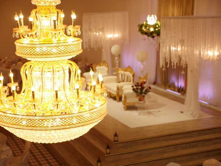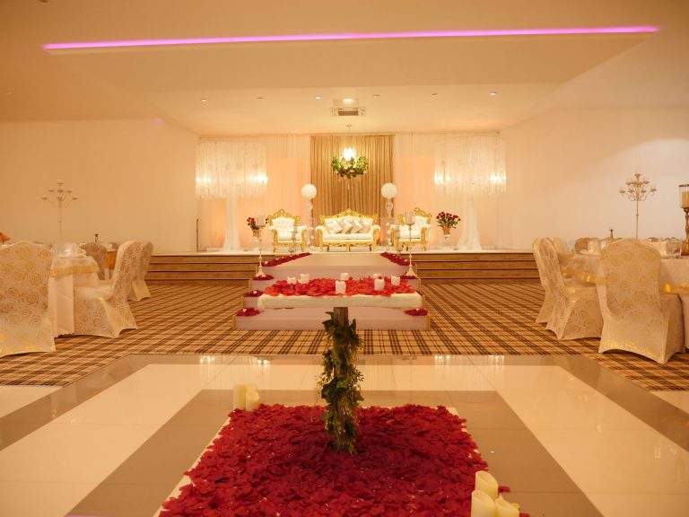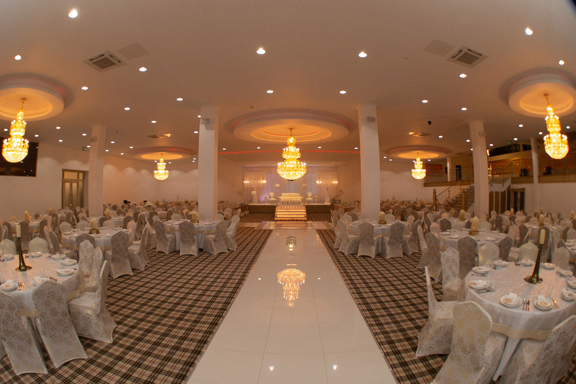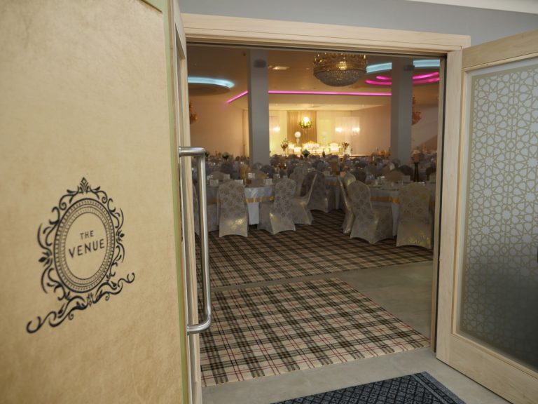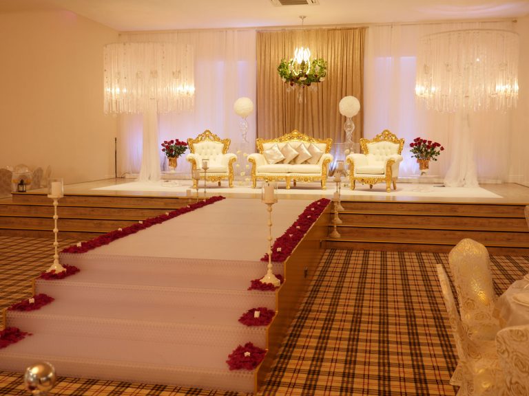 The Grand Venue – Catwalk (purple) The Grand Venue – seating arrangement The Grand Venue – seating with cake stand The Grand Venue – chandelier The Grand Venue – conference seating