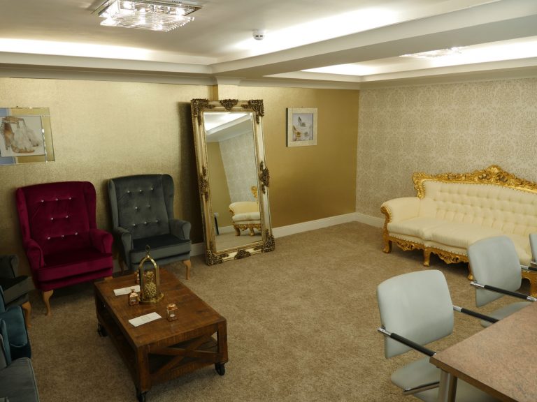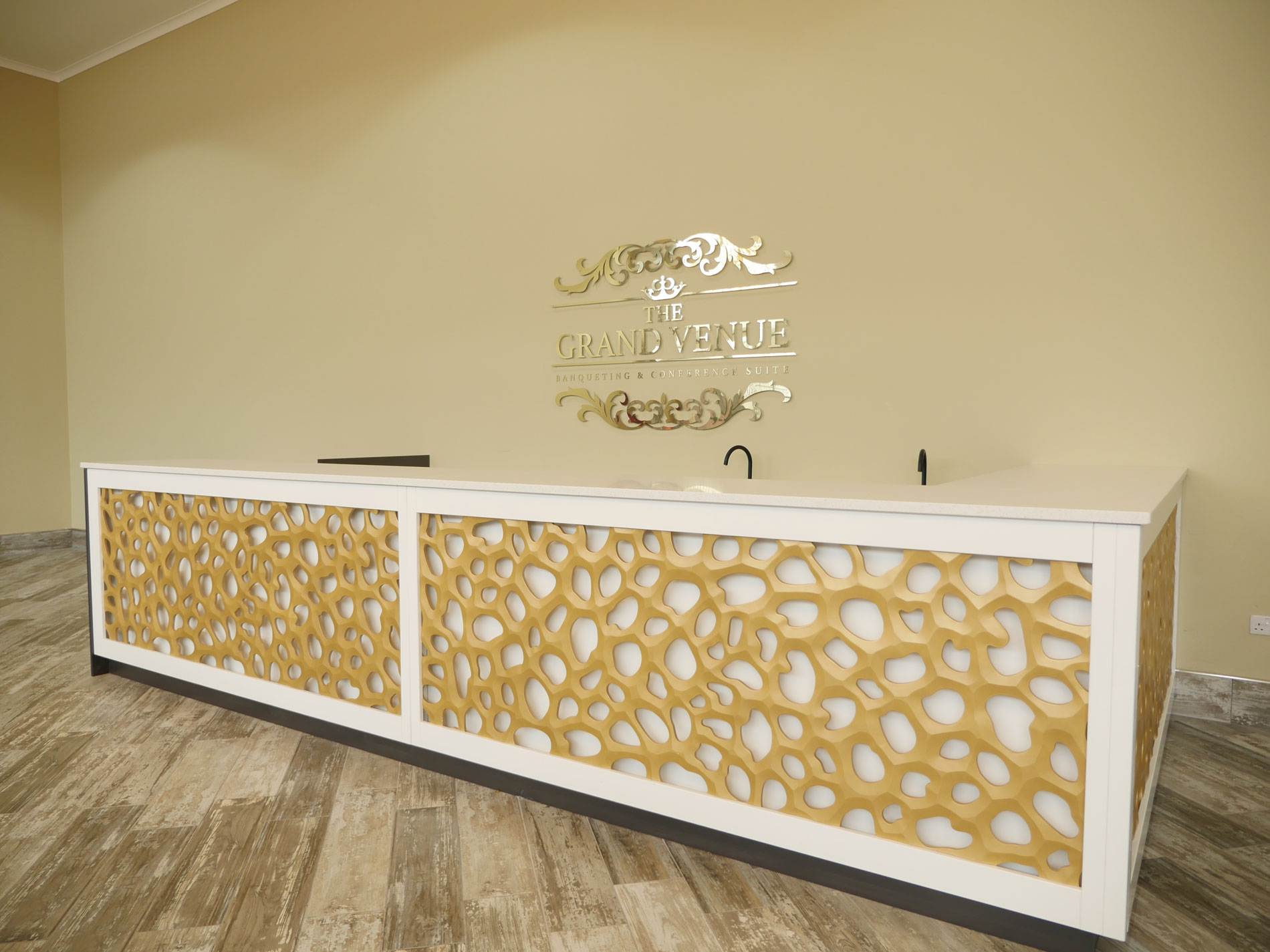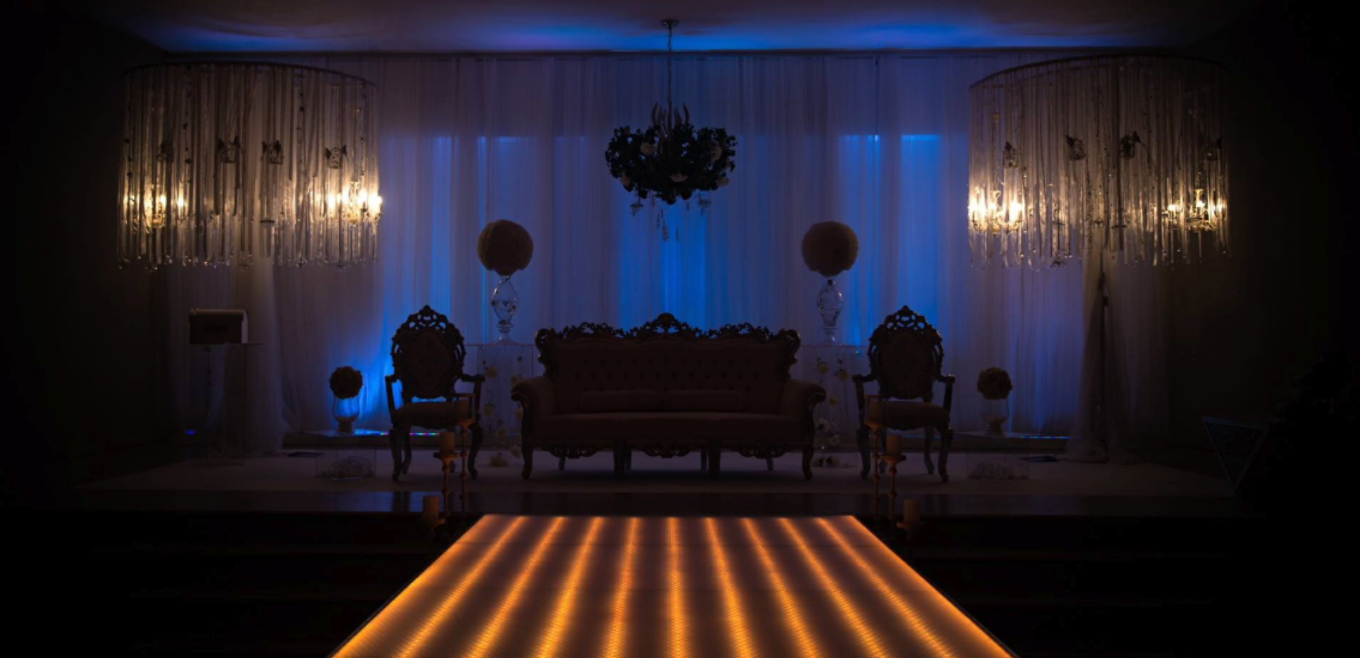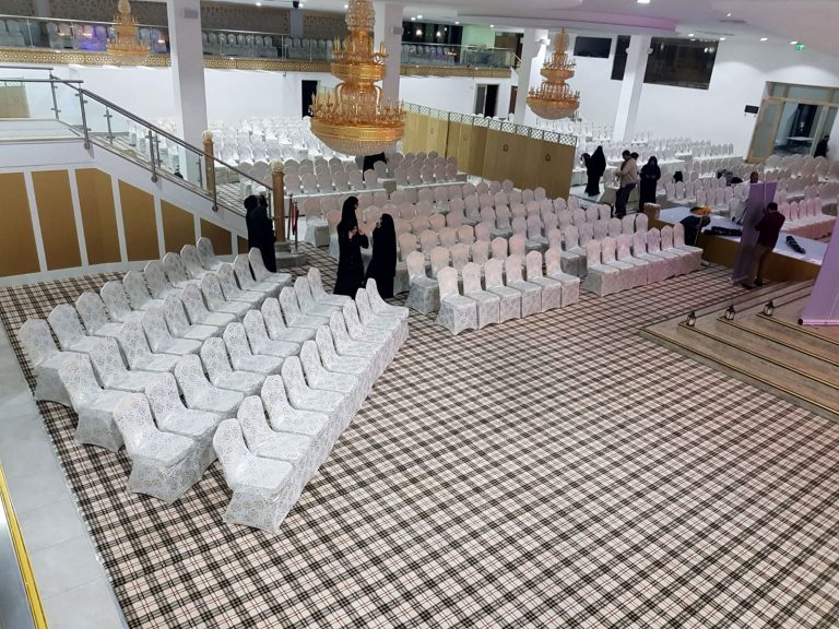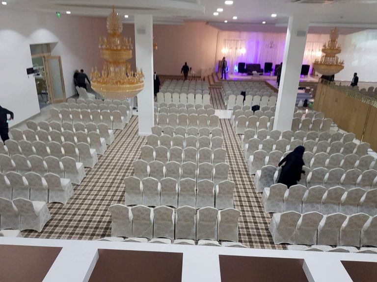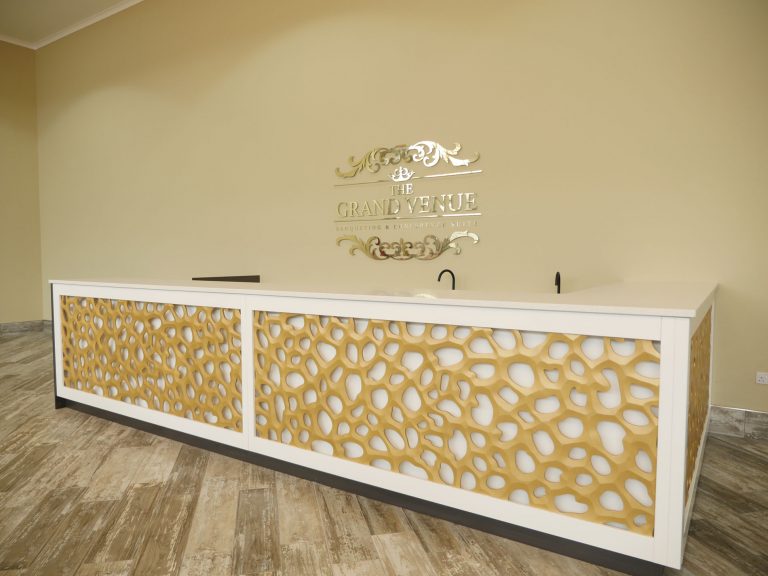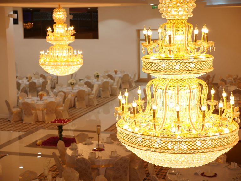 The Grand Venue – Catwalk (purple) The Grand Venue – seating arrangement The Grand Venue – seating with cake stand The Grand Venue – chandelier The Grand Venue – conference seating